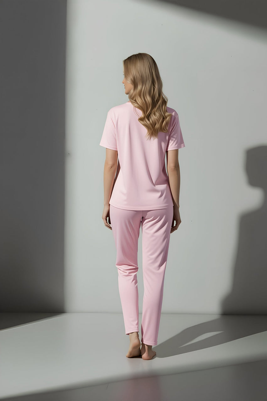 قماشه القابل للتهوية ناعم على البشرة ويحافظ على شكله غسلة تلو الأخرى، مما يجعله خيارك الأمثل للاسترخاء والنزهات غير الرسمية. يتناغم التيشيرت المريح تمامًا مع البنطال المطابق، ليمنحك إطلالة متناسقة دون المساس بالراحة.