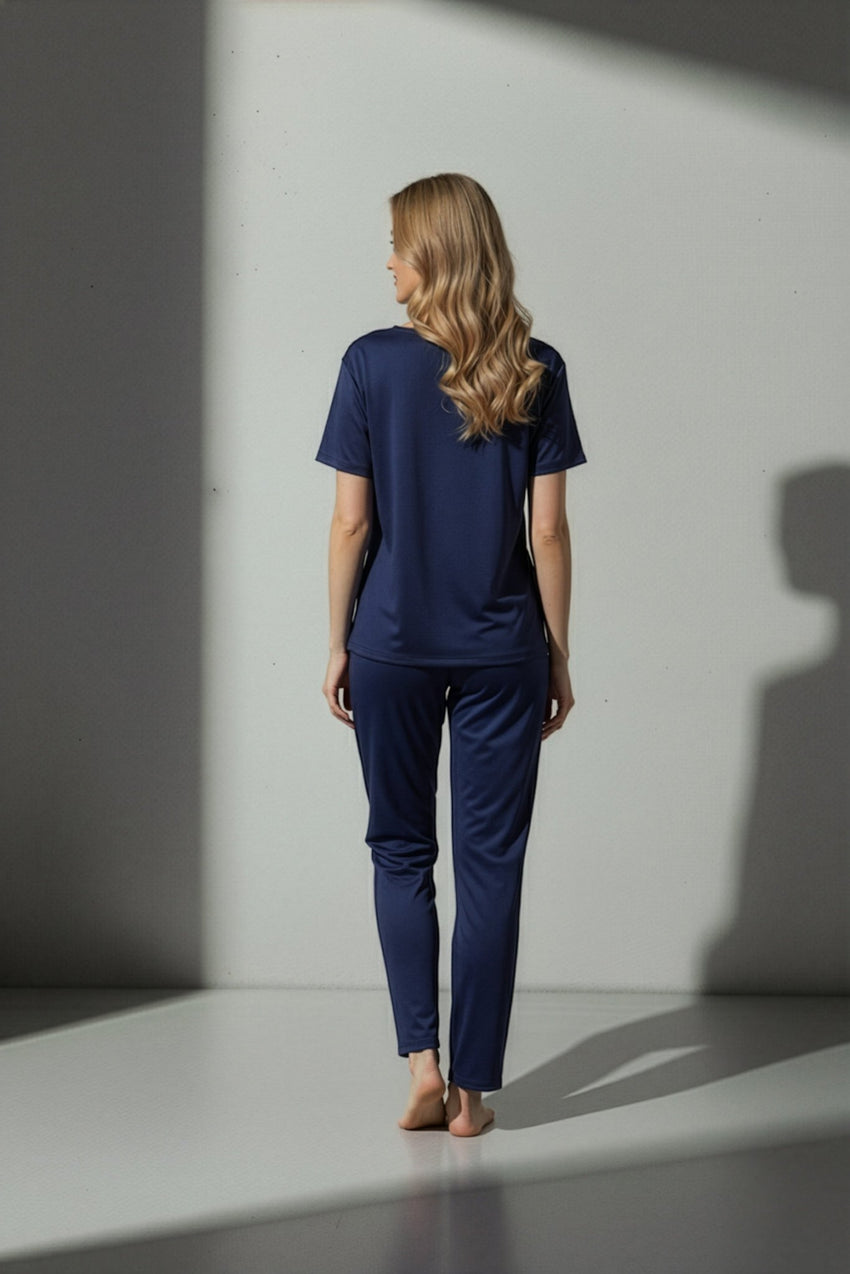 ارتقِ براحتك اليومية مع طقمنا الجديد من التيشيرت والبنطال - مصمم لراحة لا مثيل لها وارتداء يدوم طوال اليوم. مصنوع من مزيج فاخر من 95% بوليستر و5% سباندكس، يوفر هذا الطقم التوازن المثالي بين النعومة والمتانة والقدر المناسب من المرونة لسهولة الحركة.