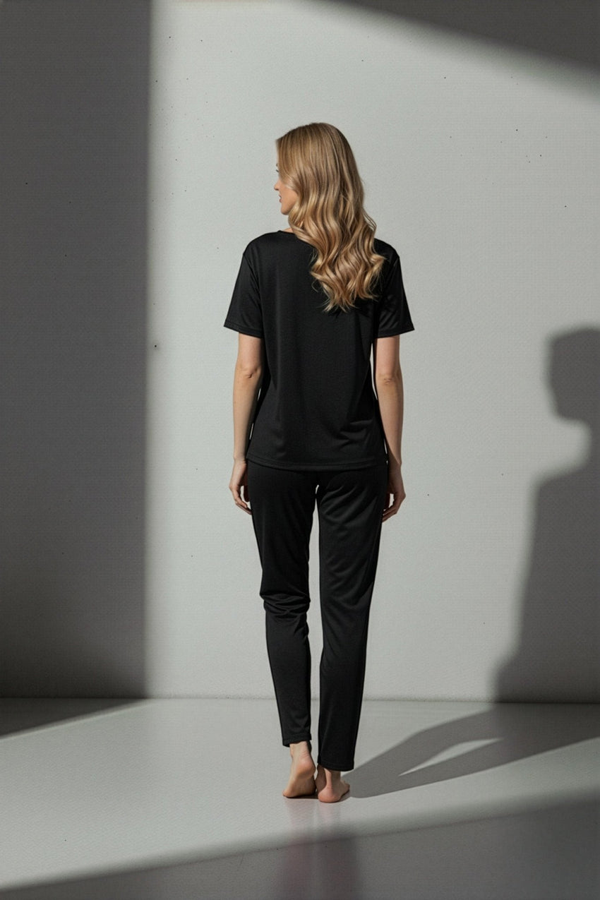 ارتقِ براحتك اليومية مع طقمنا الجديد من التيشيرت والبنطال - مصمم لراحة لا مثيل لها وارتداء يدوم طوال اليوم. مصنوع من مزيج فاخر من 95% بوليستر و5% سباندكس، يوفر هذا الطقم التوازن المثالي بين النعومة والمتانة والقدر المناسب من المرونة لسهولة الحركة.