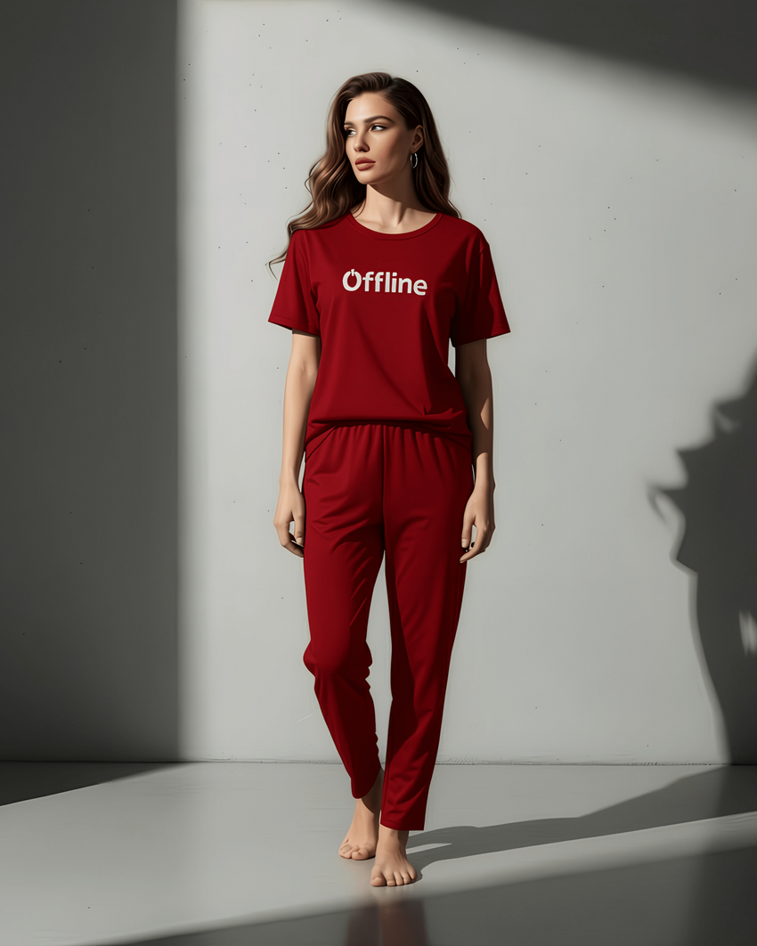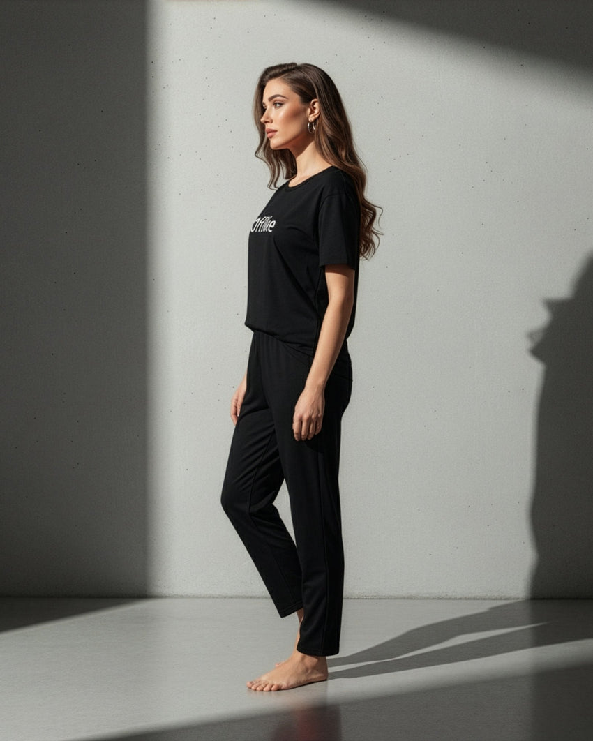 طقم بيجامة أسود مطبوع بدون اتصال بالإنترنت