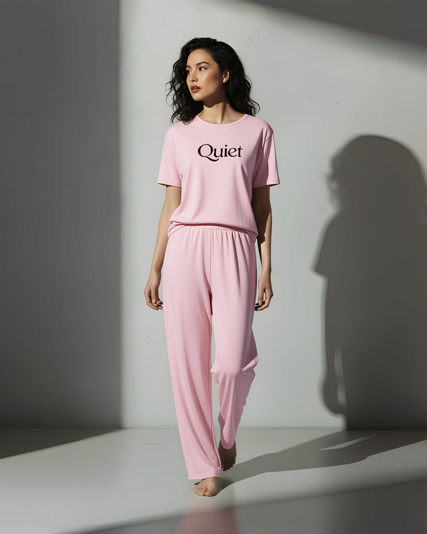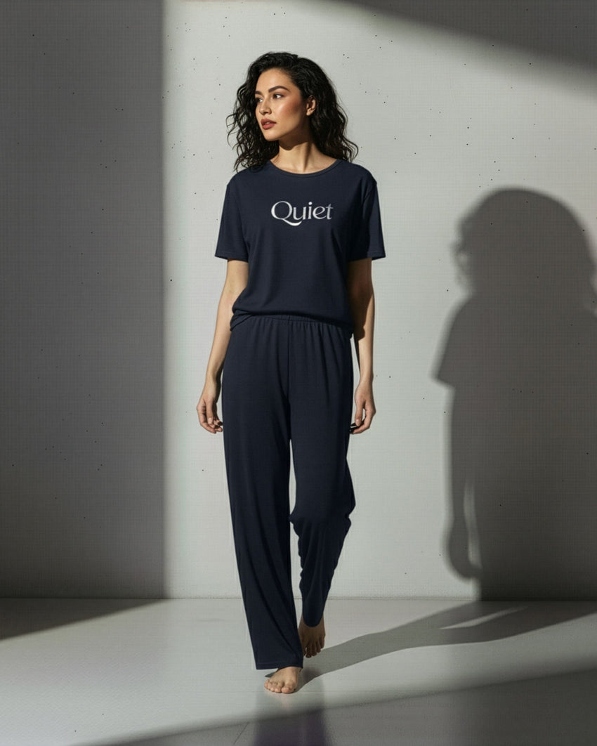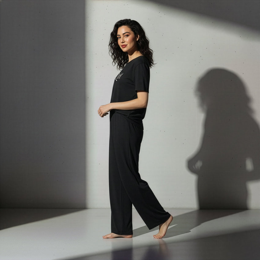 طقم بيجامات مطبوع باللون الأسود الهادئ