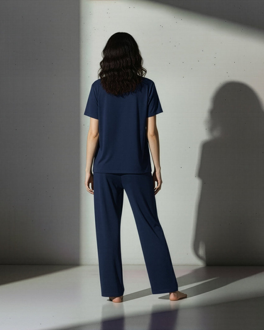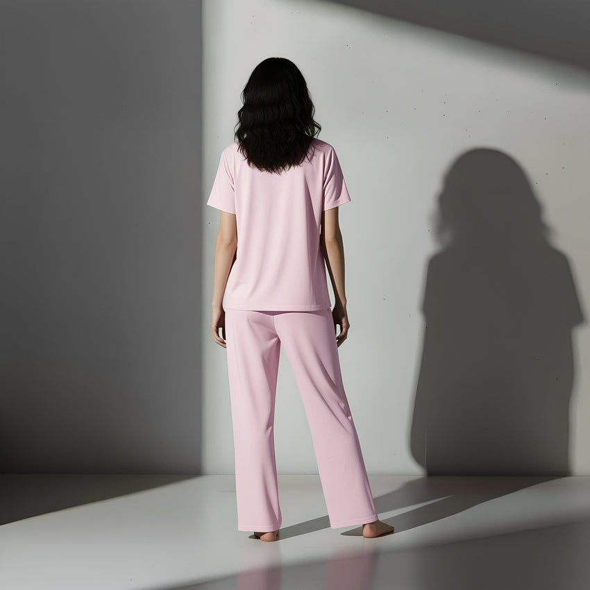 قماشه القابل للتهوية ناعم على البشرة ويحافظ على شكله غسلة تلو الأخرى، مما يجعله خيارك الأمثل للاسترخاء والنزهات غير الرسمية. يتناغم التيشيرت المريح تمامًا مع البنطال المطابق، ليمنحك إطلالة متناسقة دون المساس بالراحة.