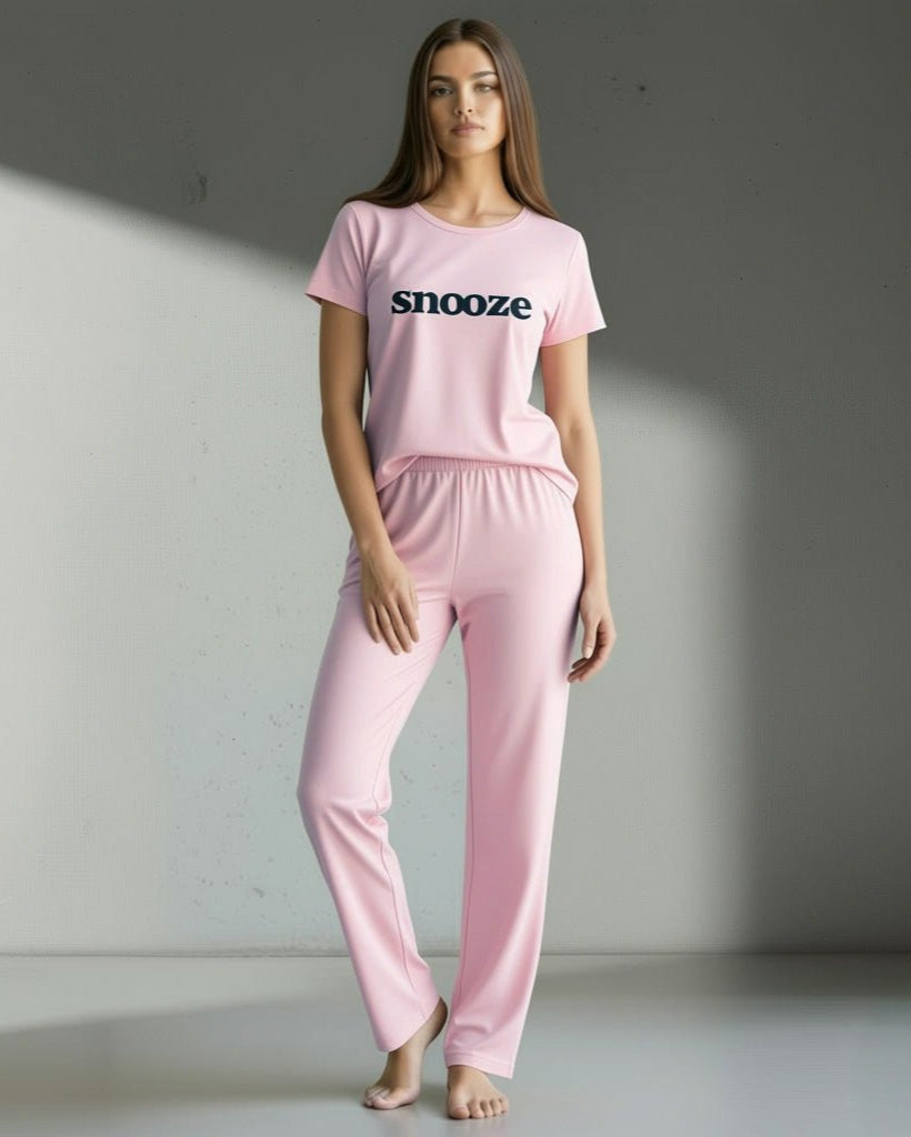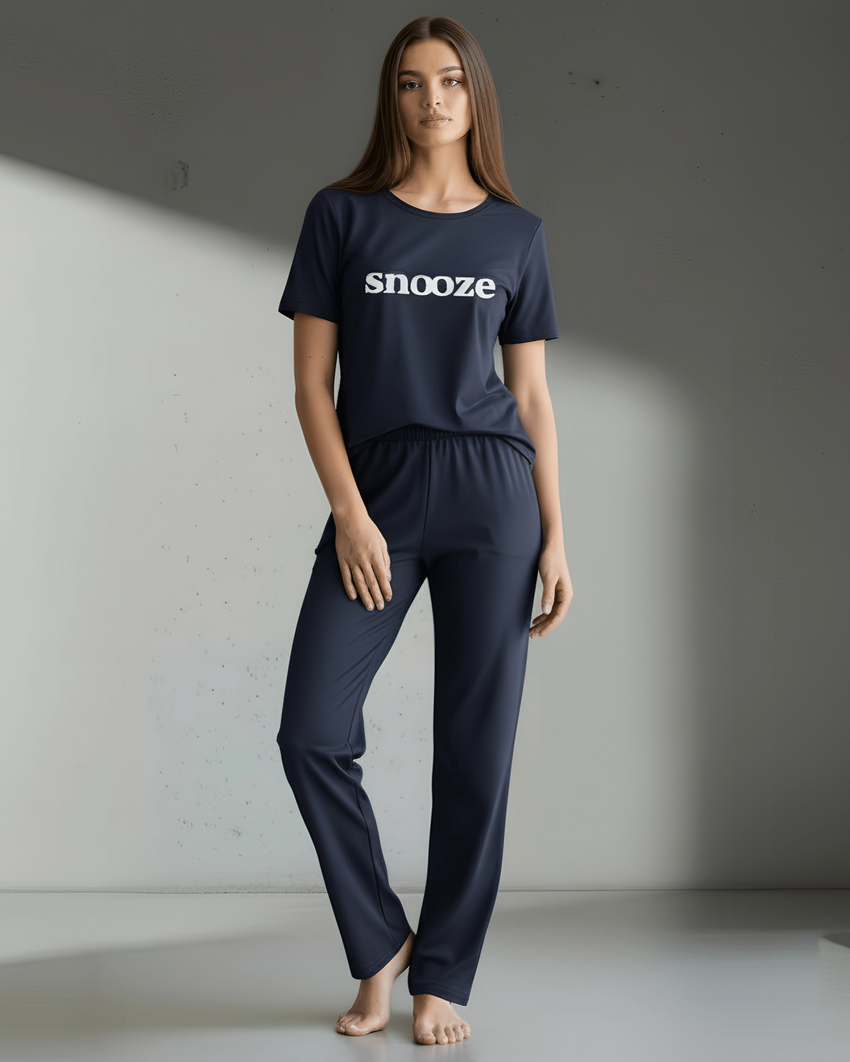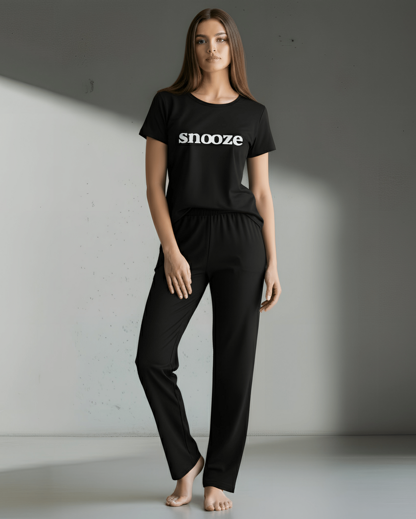 طقم بيجامة أسود مطبوع عليه صورة سنوز