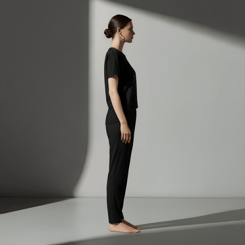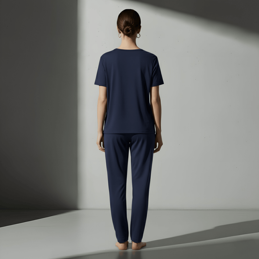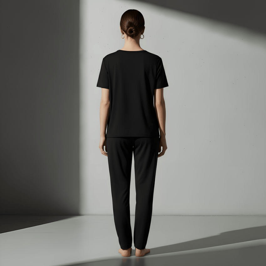 ارتقِ براحتك اليومية مع طقمنا الجديد من التيشيرت والبنطال - مصمم لراحة لا مثيل لها وارتداء يدوم طوال اليوم. مصنوع من مزيج فاخر من 95% بوليستر و5% سباندكس، يوفر هذا الطقم التوازن المثالي بين النعومة والمتانة والقدر المناسب من المرونة لسهولة الحركة.