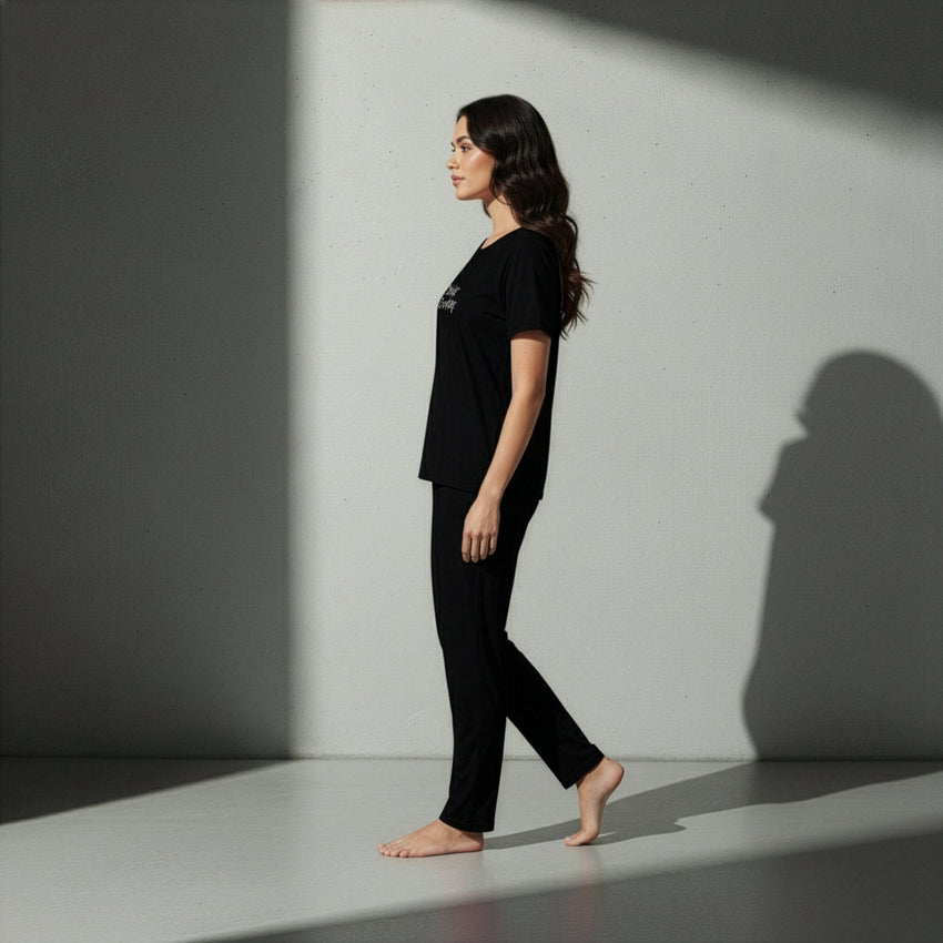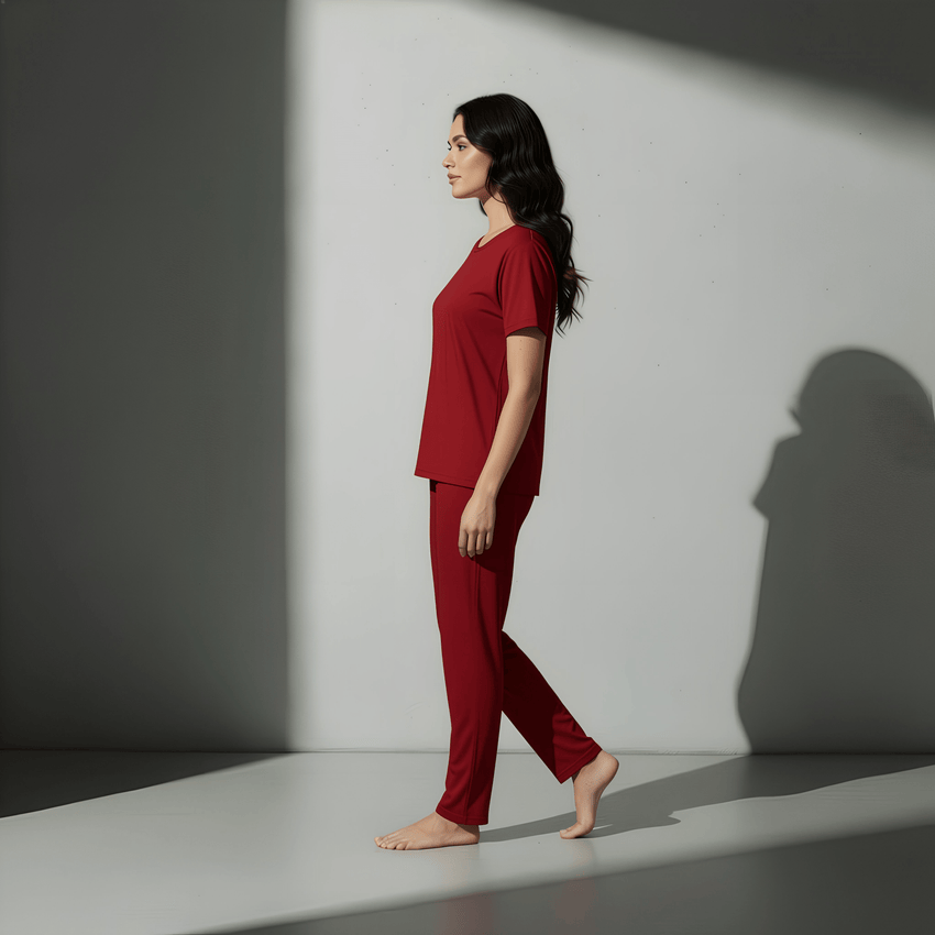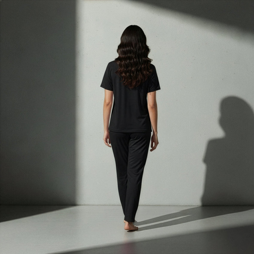 ارتقِ براحتك اليومية مع طقمنا الجديد من التيشيرت والبنطال - مصمم لراحة لا مثيل لها وارتداء يدوم طوال اليوم. مصنوع من مزيج فاخر من 95% بوليستر و5% سباندكس، يوفر هذا الطقم التوازن المثالي بين النعومة والمتانة والقدر المناسب من المرونة لسهولة الحركة.