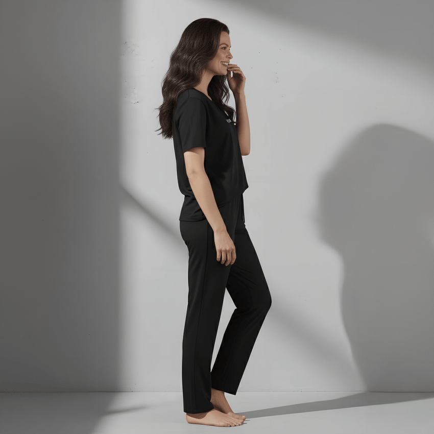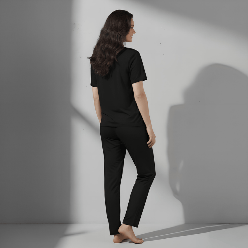 ارتقِ براحتك اليومية مع طقمنا الجديد من التيشيرت والبنطال - مصمم لراحة لا مثيل لها وارتداء يدوم طوال اليوم. مصنوع من مزيج فاخر من 95% بوليستر و5% سباندكس، يوفر هذا الطقم التوازن المثالي بين النعومة والمتانة والقدر المناسب من المرونة لسهولة الحركة.