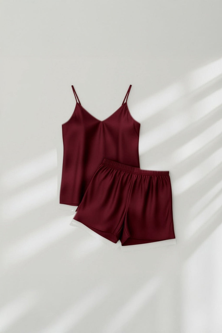 استرخِ براحة تامة مع طقم شورتات كامي ستايل، المصنوع من الساتان الذي ينساب بسلاسة ونعومة فائقة على بشرتك. صُمم هذا الطقم ليجمع بين الراحة والأناقة، وهو مثالي لصباحات دافئة ومريحة في المنزل.