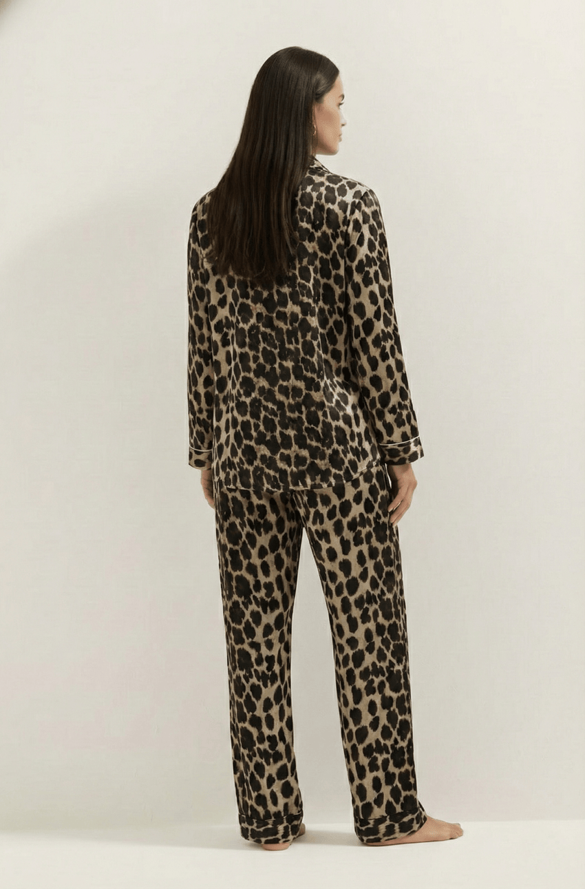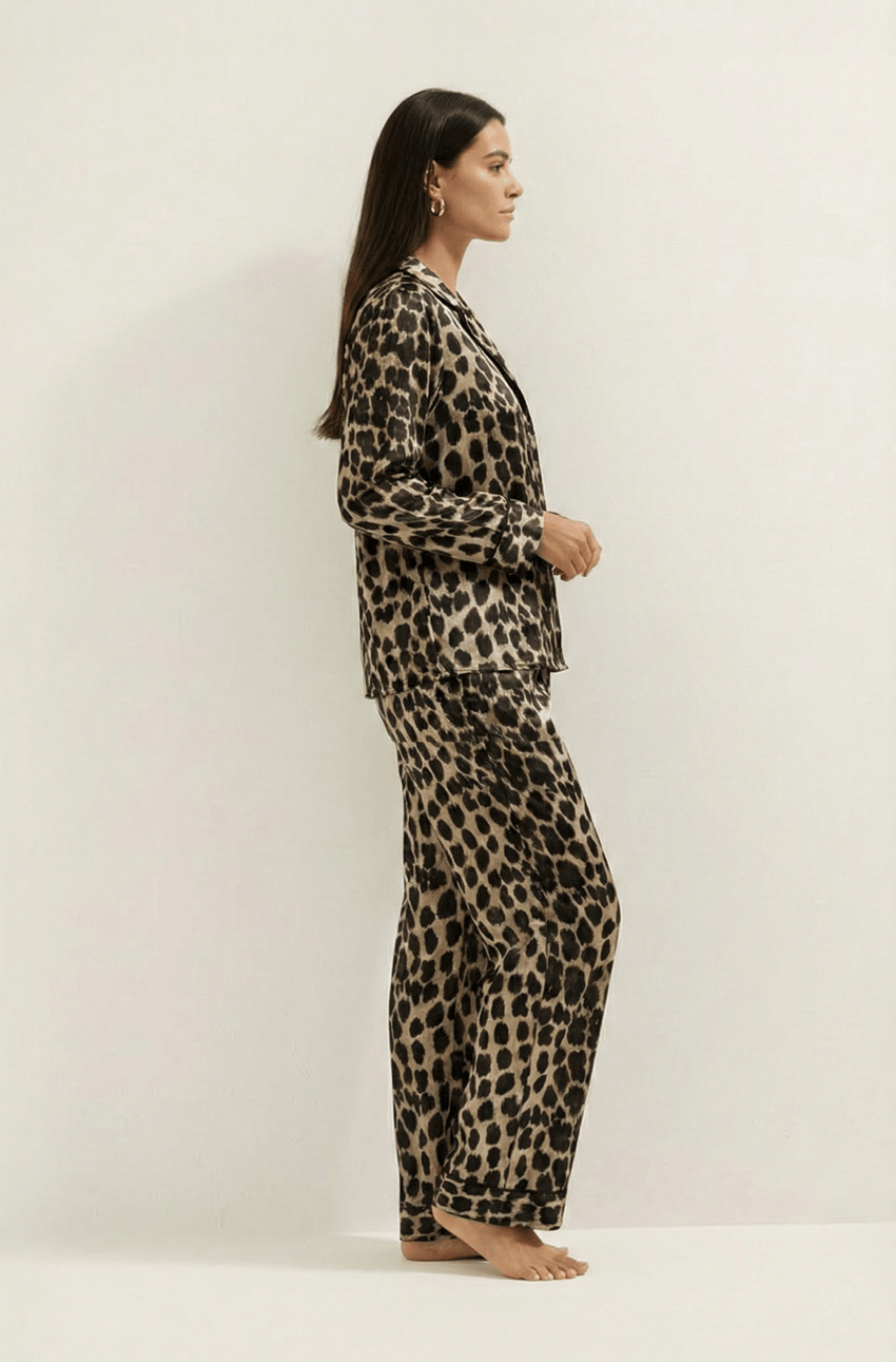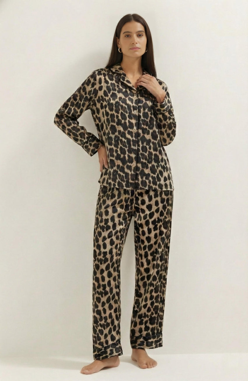 طقم بيجاما بأزرار مطبوعة بنقشة الفهد