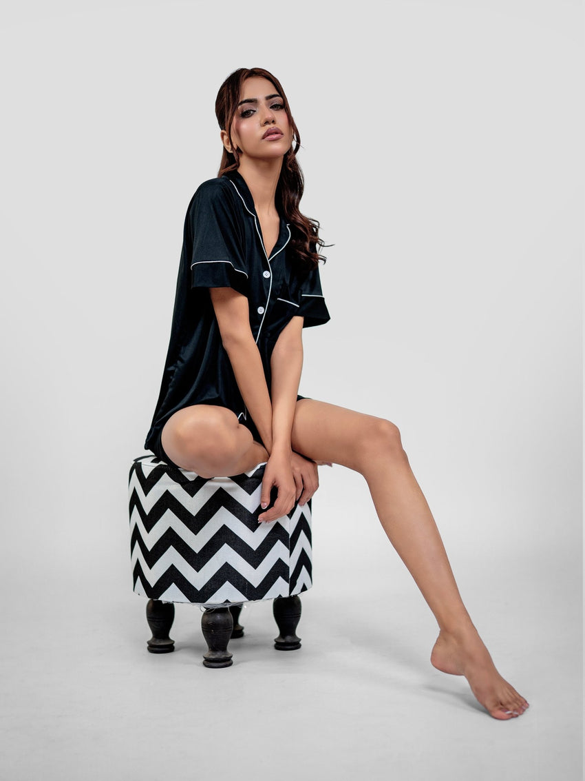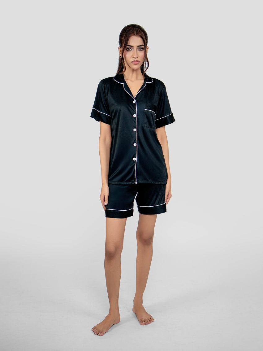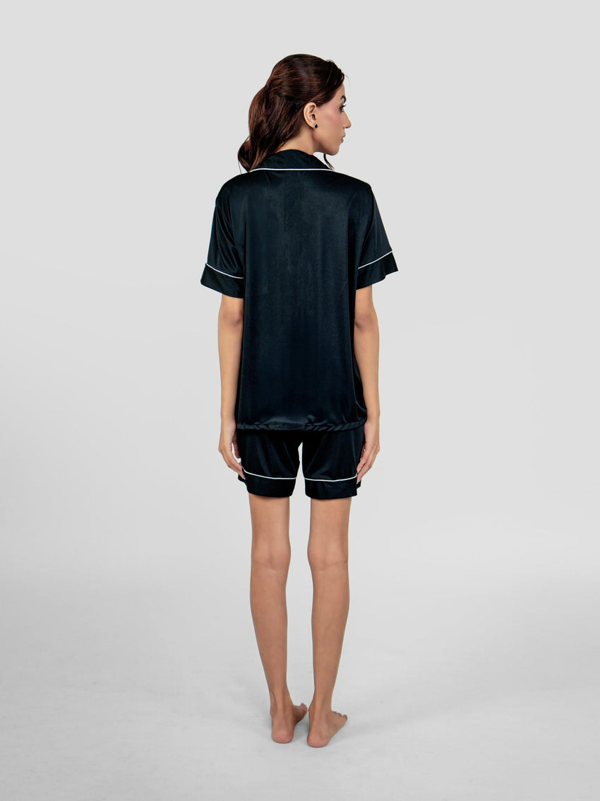 طقم بيجامة - قميص وشورت - أسود