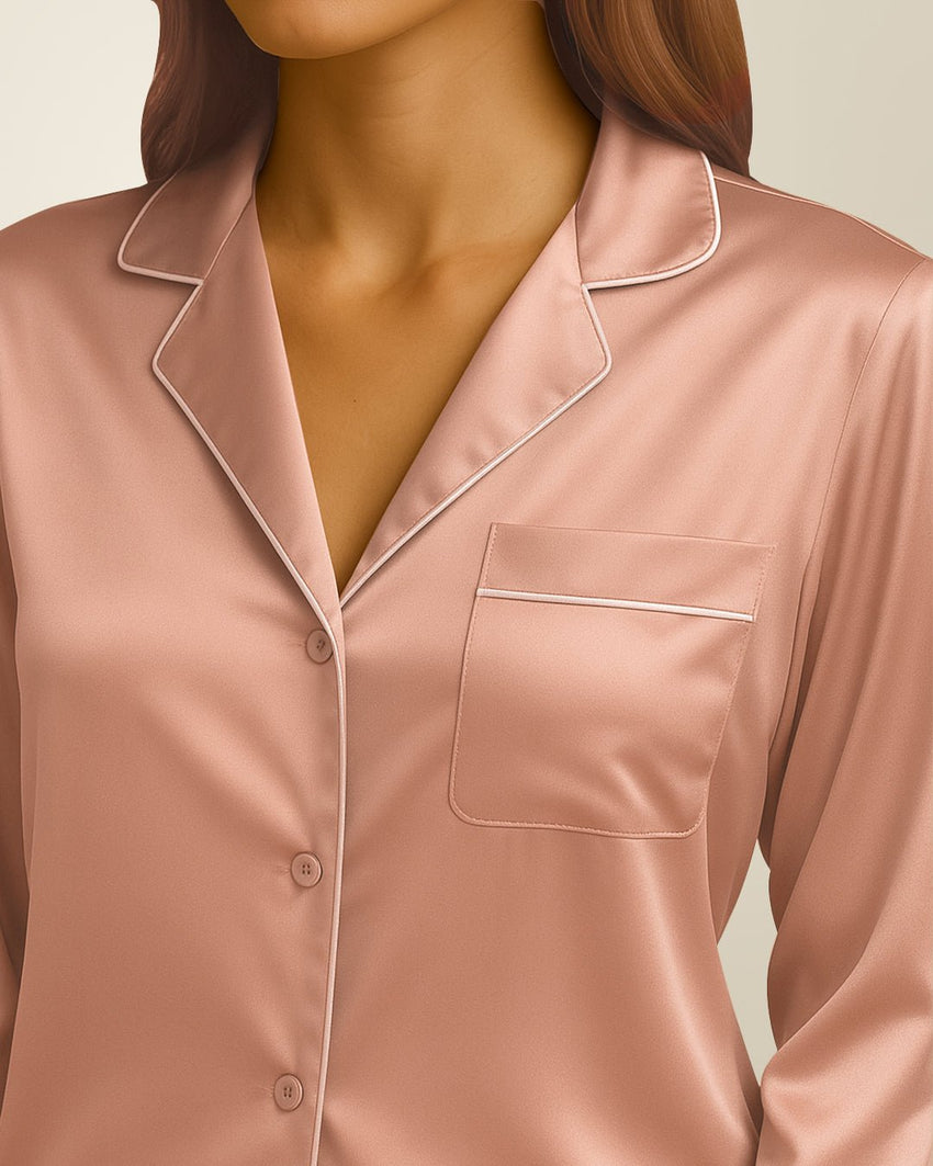طقم بيجامات حرير ساتان - داستي روز + (هدية مفاجأة مجانية)