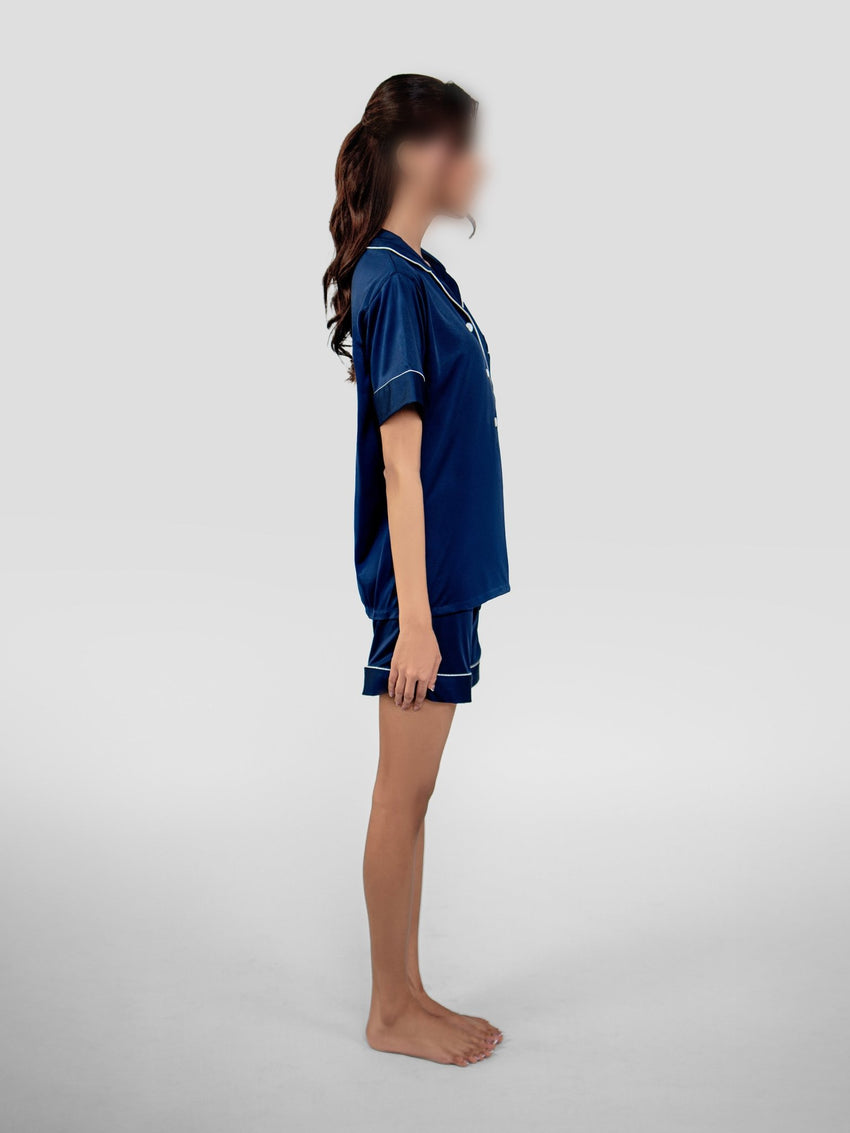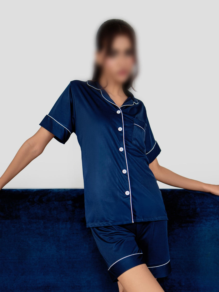 1x Lapel Neck Half Sleeve Piping Trim Tops with Front Pocket + 1x Shorts