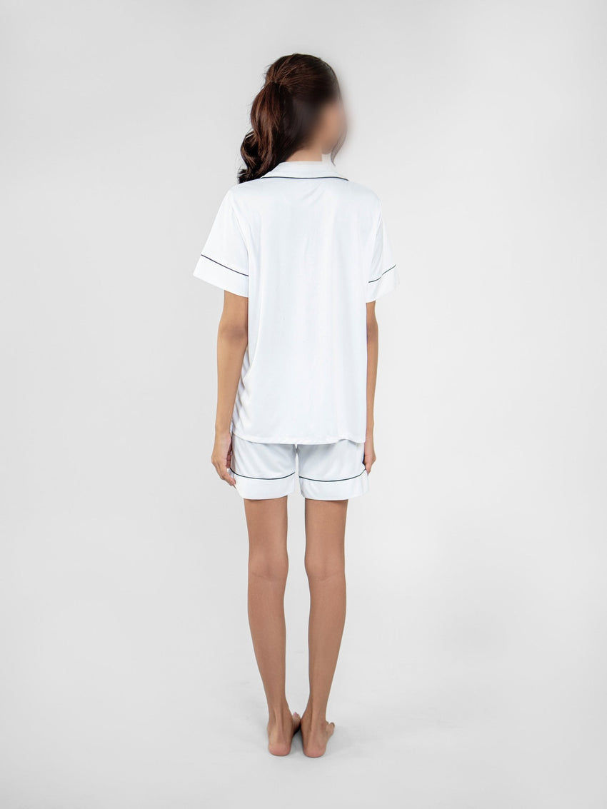 1x Lapel Neck Half Sleeve Piping Trim Tops with Front Pocket + 1x Shorts